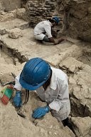 Young archaeologists work in excavations of the fortress of Damascus. September 2015.