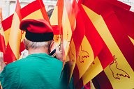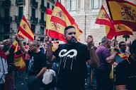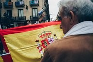 A man waving his two spanish flags during the nationalist demonstration, 30/09/17 placa generalitat Barcelone.
