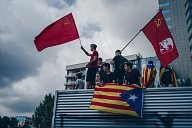 Portrait of man during the demonstration, 22/09/17 Barcelone.