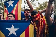 Independanstist came to listen the speech of independance by the president Carles Puigdemon at Arc de triomph a second of joy when he declare independance. 10/10/17 Barcelone.