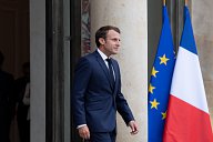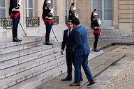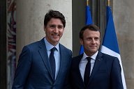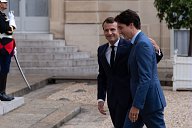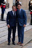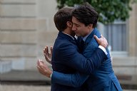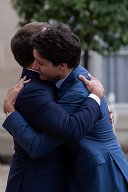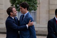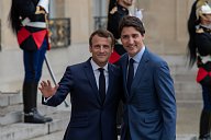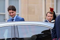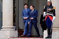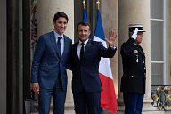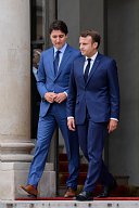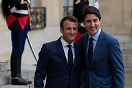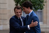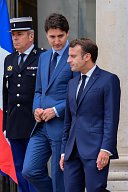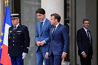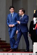 French President Emmanuel Macron receives Canadian Prime Minister Justin Trudeau at the Palais de l'Elysée on June 07, 2018