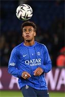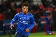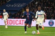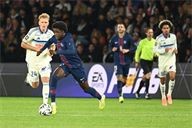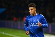 Désiré Doué (A) during the 8th Day of Ligue 1 Mc Donald's, between PSG and RC Strasbourg Alsace at Parc des Princes, October 17, 2025