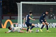 Goal by Joaquim Panichelli #9 on Lucas Chevalier (GK) during the 8th Day of Ligue 1 Mc Donald's, between PSG and RC Strasbourg Alsace at Parc des Princes, October 17, 2025