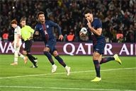 Joaquim Panichelli #9 and Warren ZaĂŻre-Emery (M) during the 8th Day of Ligue 1 Mc Donald's, between PSG and RC Strasbourg Alsace at Parc des Princes, October 17, 2025