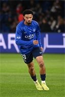 Bradley Barcola (A) during the 8th Day of Ligue 1 Mc Donald's, between PSG and RC Strasbourg Alsace at Parc des Princes, October 17, 2025