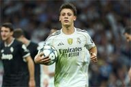 Arda Güler of Real Madrid CF during the UEFA Champions League match between Real Madrid CF and Juventus FC at the Santiago Bernabeu Stadium, on 22 October 2025.
