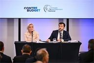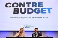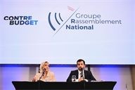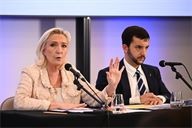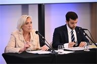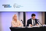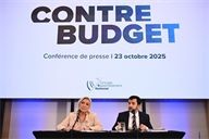 Press conference on the alternative budget (PLF2026) by Marine Le Pen and Jean-Philippe Tanguy at the Maison de la Chimie in Paris on 23 October 2025.