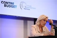 FRANCE-POLITICS/BUDGET Marine Le Pen press conference in Paris on 23 October 2025.