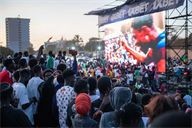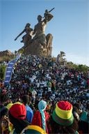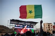 Supporters gathered to cheer on the Senegalese team in the fan zone set up at the Renaissance Monument in Dakar during the Africa Cup of Nations semi-final match against Egypt on 14 January 2026.