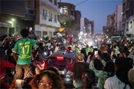 Senegalese supporters celebrate in the streets of the Ouakam district in Dakar after Senegal's victory over Egypt in the semi-finals of the Africa Cup of Nations on 14 January 2026.