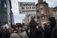 Several hundred teachers gathered today in front of the Ministry of Education of the Wallonia-Brussels Federation in Brussels. The gathering turned into a march covering the equivalent of one block, causing temporary traffic disruption but no incidents. At the end of the demonstration, the police charged and kettled the last remaining demonstrators (most had already dispersed).