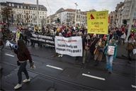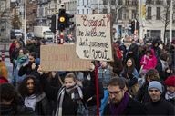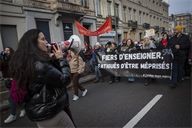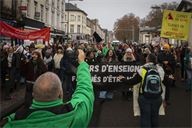 A procession of teachers marched today between the Arts et Métiers and the Pensions Tower (Gare du Midi). The action ended with speeches and a concert. In the context of a three-day general national strike in Belgium, the civil service took action on the second day, before the cultural sector took over on the third day.