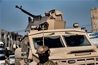 Raqqa, February 9, 2025 – A member of the Hezen Komandos, the elite unit of the Syrian Democratic Forces, in an armoured vehicle during a patrol in the streets of Raqqa. The soldiers are mainly maintaining a presence to prevent ISIS sleeper cells, still remaining in some neighbourhoods of the city, from taking action.