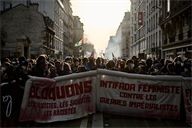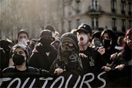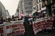 Antifascist protesters during the feminist march organized on International Women's Day in Paris on March 8, 2026.