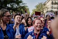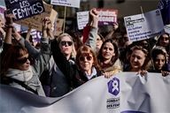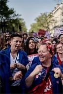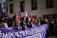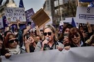 Protesters during the feminist march organized on International Women's Day in Paris on March 8, 2026.