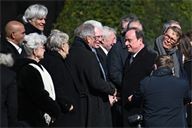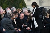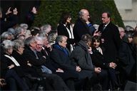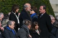Francois Hollande and Sylviane Agacinski at the state funeral for Lionel Jospin at the H么tel des Invalides in Paris on 26 March 2026.