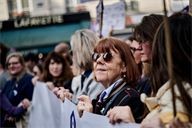 Gisele Pelicot, prominent figure in the fight against sexual violence, during the feminist march organized on International Women's Day in Paris on March 8, 2026.