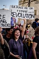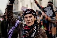 A protester during the feminist march organized on International Women's Day in Paris on March 8, 2026.