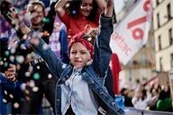 A young girl during the feminist march organized on International Women's Day in Paris on March 8, 2026.