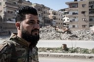an MFS soldier visits one of the churches devastated by Daesh. Raqqa the cursed city, liberated from the Islamic State by the Syrian Democratic Forces in Nov 2017.