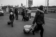 Women and children cross the border post of Medyka which marks their entry into the European Union via Poland. According to the UN, since the beginning of the invasion of Ukraine by the Russian army, almost one million people have fled the country. March 3, 2022. Medyka, Poland.