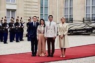 Prime Minister of Liechtenstein Daniel Risch and his wife Jasmin Schadler Risch received by French President Emmanuel Macron and his wife Brigitte Macron at the Elysee Palace for the launch of Paris 2024 Olympic Games, on July 26, 2024.