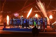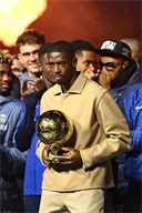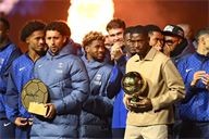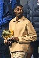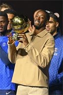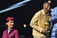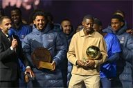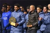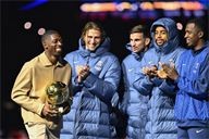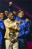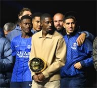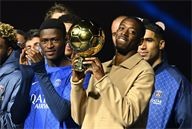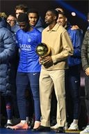 Presentation of the Ballon d'Or by Ousmane DembelƩ, the trophy for the best club by Marquinhos and a tribute to Luis Henrique, voted best coach of the year after the PSG-AJ Auxerre match on the 6th day of Ligue 1 Mc Donald's at the Parc des Princes on 27 September 2025.