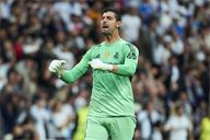 Thibaut Courtois of Real Madrid CF during the LALIGA EA SPORTS match between Real Madrid CF and FC Barcelona at the Santiago Bernabeu Stadium, on 26 October 2025.