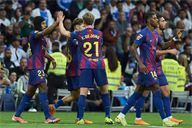 Fermin Lopez of FC Barcelona celebrates his goal during the LALIGA EA SPORTS match between Real Madrid CF and FC Barcelona at the Santiago Bernabeu Stadium, on 26 October 2025.