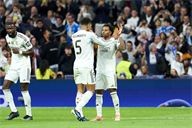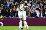 Rodrygo of Real Madrid CF celebrates his goal with Jude Bellingham of Real Madrid CF during the UEFA CHAMPIONS LEAGUE match between Real Madrid CF and Manchester City FC at Bernabeu stadium on December 10, 2025.