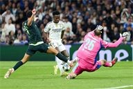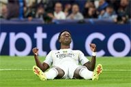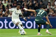 Vinicius Junior of Real Madrid CF during the UEFA CHAMPIONS LEAGUE match between Real Madrid CF and Manchester City FC at Bernabeu stadium on December 10, 2025.