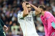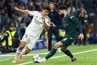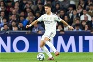 Alvaro Carreras of Real Madrid CF during the UEFA CHAMPIONS LEAGUE match between Real Madrid CF and Manchester City FC at Bernabeu stadium on December 10, 2025.