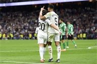 Fran Garcia of Real Madrid CF celebrates his goal with Jude Bellingham of Real Madrid CF during the La Liga EA Sport match between Real Madrid CF and Real Betis Balompie at Bernabeu stadium on January 4th, 2026.