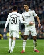 Jude Bellingham and Franco Mastantuono of Real Madrid CF during the La Liga EA Sport match between Real Madrid CF and Levante UD at Bernabeu stadium on January 17th, 2026.