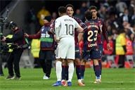Kylian Mbappe of Real Madrid CF and Pablo Martinez of Levante UD during the La Liga EA Sport match between Real Madrid CF and Levante UD at Bernabeu stadium on January 17th, 2026.