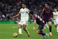 Jude Bellingham of Real Madrid CF battles for the ball with Iker Losada of Levante UD during the La Liga EA Sport match between Real Madrid CF and Levante UD at Bernabeu stadium on January 17th, 2026.