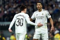 Jude Bellingham and Franco Mastantuono of Real Madrid CF during the La Liga EA Sport match between Real Madrid CF and Levante UD at Bernabeu stadium on January 17th, 2026.