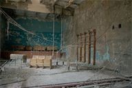 Inside of an abandoned school in the exclusion zone. On April 26, 1986, reactor 4 of the Chernobyl nuclear power plant exploded, causing the worst nuclear disaster in the history of civilian nuclear power. Forty years later, within the exclusion zone, the site’s infrastructure continues to be operated and secured despite Russia’s invasion of Ukraine.