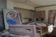 Old Soviet propaganda posters left abandoned in Pripyat. On April 26, 1986, reactor 4 of the Chernobyl nuclear power plant exploded, causing the worst nuclear disaster in the history of civilian nuclear power. Forty years later, within the exclusion zone, the site’s infrastructure continues to be operated and secured despite Russia’s invasion of Ukraine.