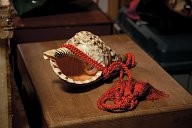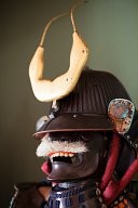 Kat's helmet. From the old folk belief that centipedes never go back or retreat, using designs of centipedes for armors and equipment was popular.