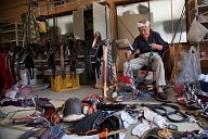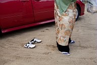 Nomaoi Samurai Warrior changing modern shoes to Japanese sandals.