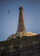 Scene of daily life in Paris, Eiffel Tower dealer.