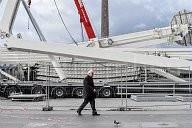 Marcel Campion, king of the fairgrounds oversees the assembly of the Ferris wheel, Place de la Concorde on 12 November 2017.