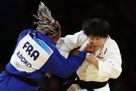 Romane Dicko (FRA) during the Finals of the Judo team events at the Paris Olympic Games between France and Japan, at the Grand Palais Ephemere, August 3, 2024