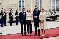 Prime Minister of Luxembourg Luc Frieden and his wife Marjolijne Fortuyn-Frieden received by French President Emmanuel Macron and his wife Brigitte Macron at the Elysee Palace for the launch of Paris 2024 Olympic Games, on July 26, 2024.