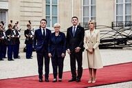 Governor-General of New Zealand Dame Cindy Kiro and her husband Richard Andrew Davies received by French President Emmanuel Macron and his wife Brigitte Macron at the Elysee Palace for the launch of Paris 2024 Olympic Games, on July 26, 2024.