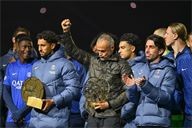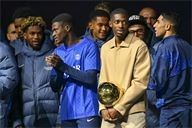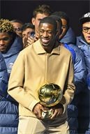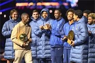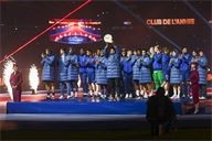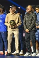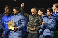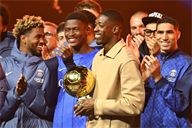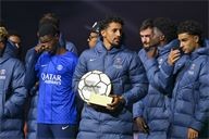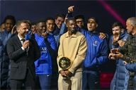 Presentation of the Ballon d'Or by Ousmane DembelƩ, the trophy for the best club by Marquinhos and a tribute to Luis Henrique, voted best coach of the year after the PSG-AJ Auxerre match on the 6th day of Ligue 1 Mc Donald's at the Parc des Princes on 27 September 2025.
