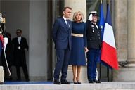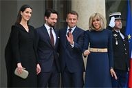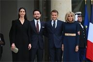 The President of the Republic, Emmanuel Macron, and his wife, Brigitte Macron, hosted the Crown Prince of the Kingdom of Jordan, Hussein bin Abdullah, and his wife, Princess Rajwa Al Hussein, for a working lunch at the Élysée Palace on 8 October 2025.