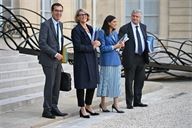 Ms Maud Bregeon, Government Spokesperson, Ms Rachida Dati, Minister of Culture, Sébastien Martin, Minister Delegate to the Minister of Economy, Finance and Industrial, Energy and Digital Sovereignty, responsible for Industry, and Mr Vincent Jeanbrun, Minister of Urban Affairs and Housing, at the Council of Ministers meeting on 14 October 2025.