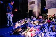 Tributes in front of the Bataclan theatre to the victims of the Paris attacks, which occurred ten years earlier, on 13 November 2015.